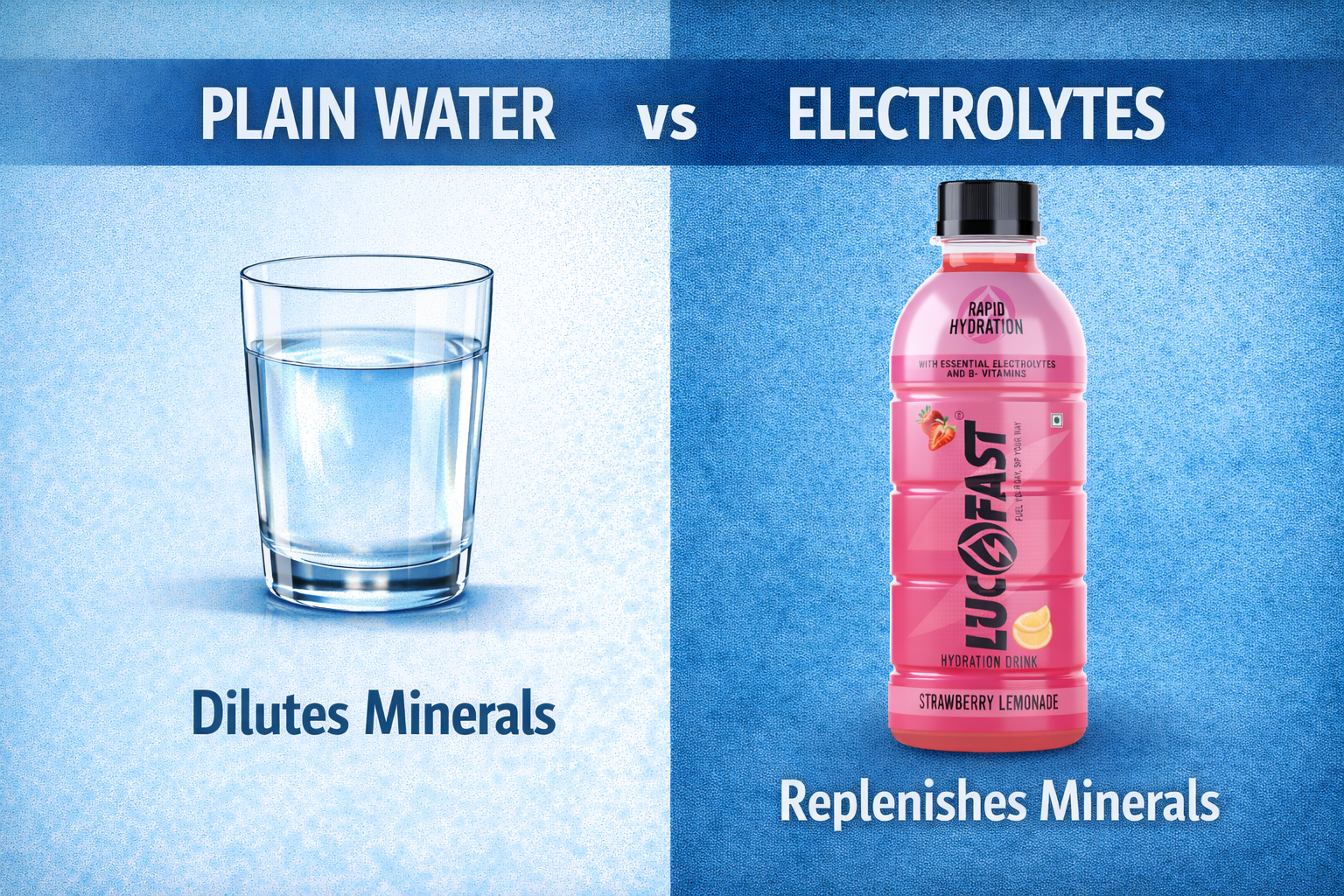 A comparison infographic showing why electrolytes for hangover recovery are more effective than plain water by replenishing essential minerals lost after drinking alcohol.